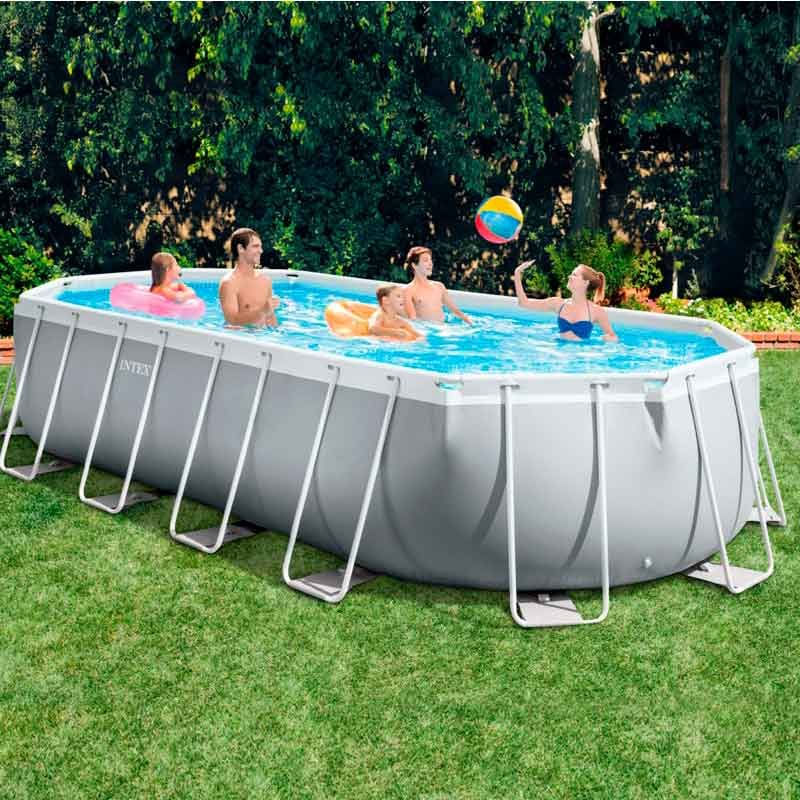 Disfruta al máximo del verano junto a tu familia y amigos con la piscina ovalada desmontable modelo Prism Frame de la marca Intex. Tiene una capacidad de 18202 litros de agua y pueden usarla 8 o más personas al mismo tiempo. Incluye depuradora de cartucho tipo A con capacidad de filtración de 5678 litros/hora y sistema Hydro Aeration Technology. El armazón está compuesto por una lona tricapa de PVC-poliéster de primera calidad y contrafuertes de barras tubulares recubiertos con pintura epoxi anticorrosión y antióxido. La pared interior tiene un diseño en azul simulando gresite y la pared exterior es de un suave color gris. Además, incluye tapón de vaciado para facilitar el drenaje, escalera de seguridad con plataforma y escalones desmontables, tapiz y cobertor.