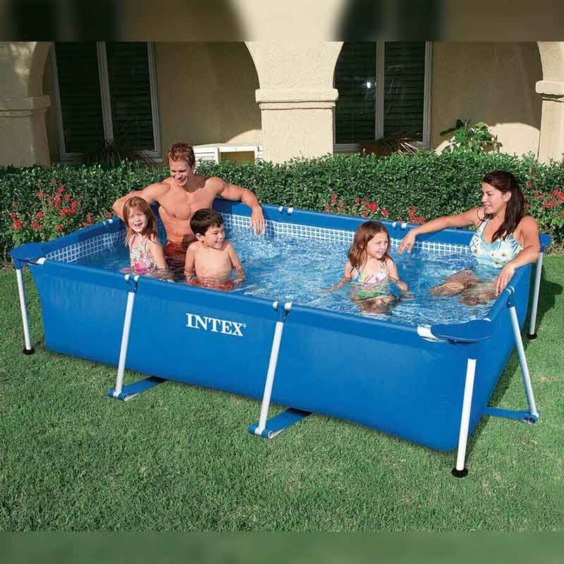 En verano, nos encanta pasar tiempo con la familia y con amigos y qué mejor que nuestra piscina Small Frame Intex familiar para disfrutar de esos momentos. Una opción genial para colocar en jardines o terrazas en los meses de verano. Opte por un momento de diversión familiar con la piscina Small Frame familiar. Esta piscina sin obras tiene una capacidad de 2282 litros de agua y está pensada para ser utilizada por mayores de 6 años de edad. El producto ideal para superar los calurosos días de verano y hacer de sus vacaciones un verdadero momento de entretenimiento familiar. Práctica y robusta, esta piscina elevada puede soportar horas de diversión sin dificultad. Con forma rectangular, su estructura tubular está compuesta por piezas independientes de acero resistente y duradero, pintadas con epoxy que protege al metal contra el óxido. Lona fabricada con tecnología Super-Tough. Tiene un tapón de vaciado que permite la conexión a una manguera de jardín para que se pueda desaguar hacia áreas alejadas. Tiene tres capas de material extrafuerte laminadas que proporcionan una mayor resistencia y durabilidad.