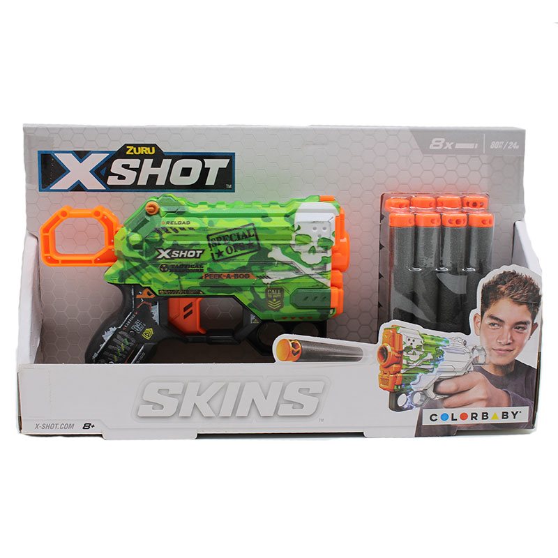 Estupenda pistola de dardos de X-SHOT con la que tus peques y sus amigos se lo pasarán genial organizando grandes batallas por la casa y el jardín. Incluye 8 dardos, los cuales están fabricados con espuma, por lo que son blanditos y no causan daños en cristales ni mobiliario. La pistola tiene capacidad para un dardo, con un cargador muy fácil de usar, tirando de la anilla hacia atrás. Cuenta con un almacenamiento frontal para 2 dardos, para que no se queden sin munición. Además, son muy ligeros, llegando a alcanzar los 27 metros de distancia. Se recomienda su uso a partir de los 8 años. Este tipo de juguete ayuda a los niños a mejorar su orientación espacial, desarrollar la coordinación ojo-mano, socializar y mejorar sus relaciones personales con otros niños.