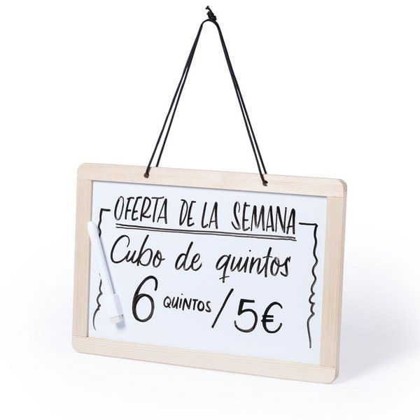 Por un lado es pizarra de tiza y por el otro pizarra de rotulador Incluye: Tizas Rotulador Borrador de pizarra Certificado CE Medidas aprox.: 31 x 21 x 1,2 cm