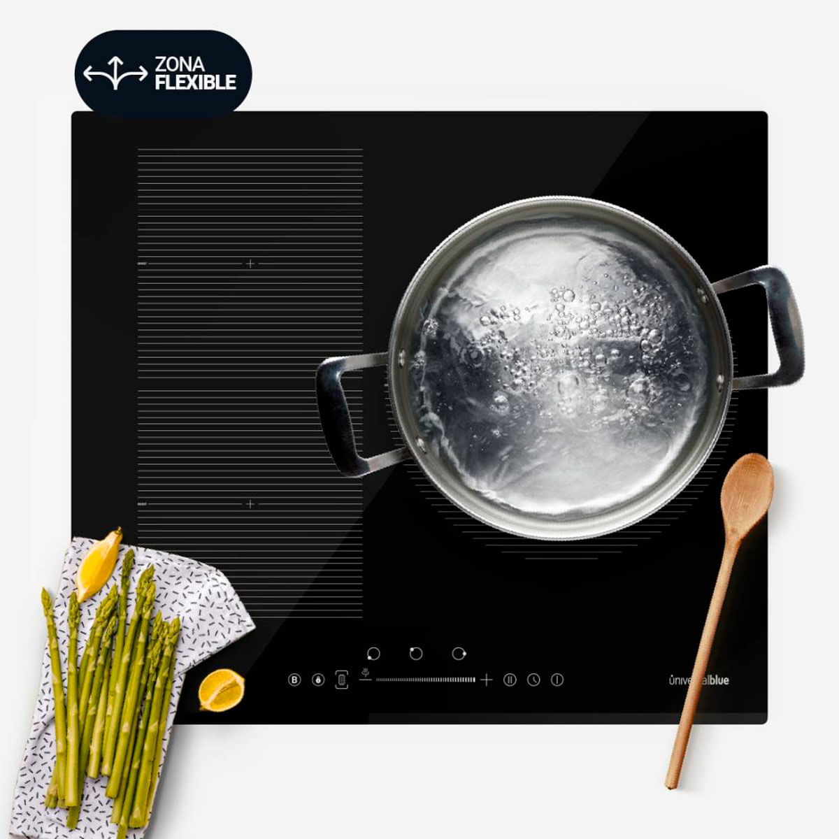 La placa de inducción Meissa Flex 6070BF de Universal Blue pone toda la carne en el asador para ofrecerte un electrodoméstico práctico y eficiente. Cuenta con una potencia total de 6000 W, repartida en 3 zonas de cocción. La placa de inducción Meissa Flex 6070BF es una opción muy eficiente, ya que utiliza la energía de forma directa para calentar los alimentos. La placa cuenta con 3 zonas de cocción de diferentes tamaños y potencias, lo que permite cocinar todo tipo de alimentos. Además, la zona flexible (resultado de la unión de las zonas 1 y 2) permite colocar recipientes de cualquier tamaño. Este modelo de Universal Blue cuenta con un control táctil intuitivo y fácil de usar. Además, dispone de funciones como la función Boost, que permite aumentar la potencia de las zonas de cocción de forma temporal, o la función Pausa, que permite detener el funcionamiento de la placa sin tener que apagarla. La Meissa Flex 6070BF cuenta, además, con una serie de funciones que la convierten en una opción muy versátil y práctica. La función Barbacoa crea un calor intenso y uniforme, lo que es ideal para cocinar carnes, pescados o verduras a la parrilla. La función Mantener Caliente mantiene los alimentos calientes sin que se cocinen más. Esto es útil, por ejemplo, para mantener la comida caliente mientras se prepara el resto de la comida. ¡Confía en el rendimiento y las prestaciones de esta placa de inducción de Universal Blue!