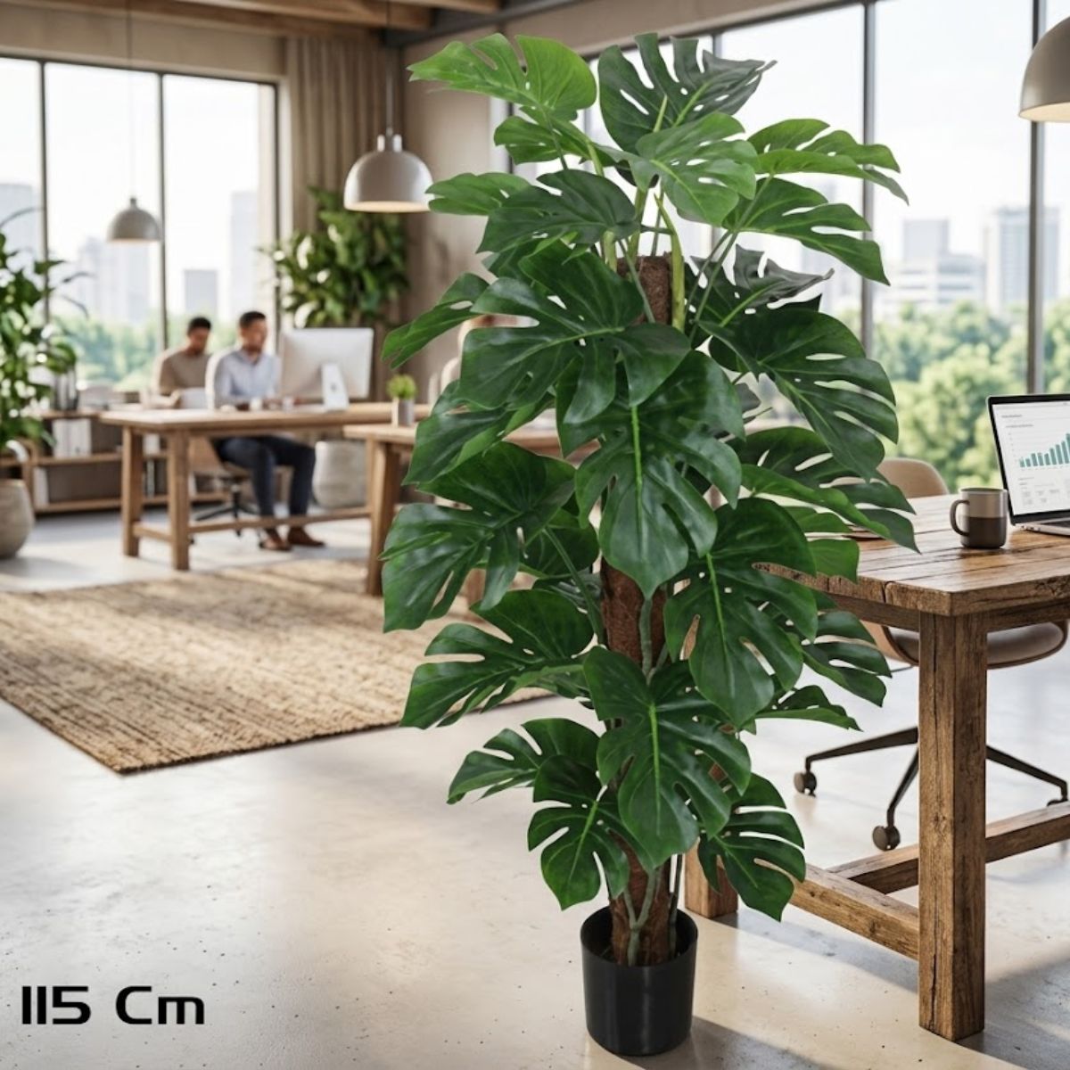 Dale un toque fresco y natural a cualquier rincón sin complicaciones con la planta artificial Monstera de 115 cm. Fabricada en material PP de alta calidad, destaca por su diseño realista y por estar muy poblada de hojas, lo que consigue un efecto visual frondoso y lleno de vida que transforma al instante cualquier estancia. Es perfecta para salones, dormitorios, oficinas o incluso recibidores que necesitan un extra de estilo sin recurrir a plantas naturales. Incluye macetero, por lo que no tendrás que preocuparte por nada más que colocarla y disfrutarla. Su estética moderna y decorativa encaja tanto en ambientes minimalistas como en espacios más cálidos o tropicales, aportando ese toque verde tan en tendencia. Además, es una solución práctica y duradera, ya que no necesita riego, luz ni cuidados específicos, manteniendo siempre su aspecto impecable como el primer día. Si buscas decorar sin esfuerzo y con resultado de revista, esta Monstera es una apuesta segura: funcional, resistente y con un acabado que parece natural de verdad.