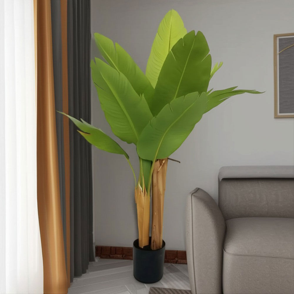 Fabricado en material plástico de alta calidad, la imitación platanera se destaca por su aspecto realista y duradero. Las hojas detalladas y su realista estructura aseguran que el árbol mantenga su forma y belleza con el tiempo, sin decolorarse ni marchitarse. Además, gracias a su tamaño compacto, es fácil de ubicar en cualquier lugar, añadiendo un toque natural sin ocupar demasiado espacio.