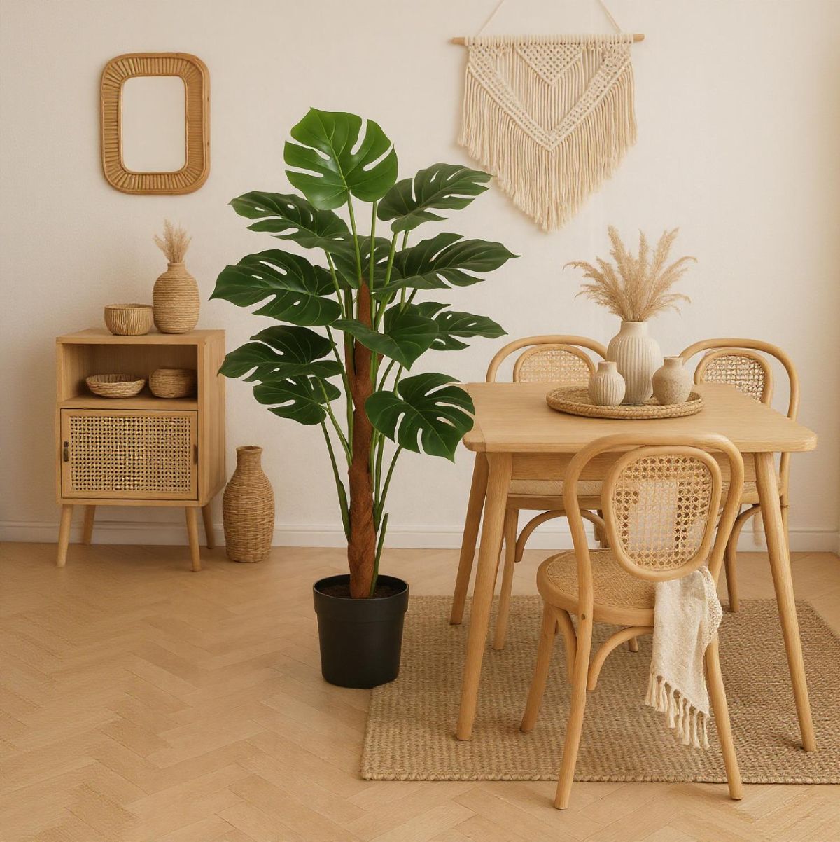 Ideal para colocar en el salón, comedor, dormitorio o incluso en una oficina, esta planta combina fácilmente con distintos estilos de decoración, desde los más modernos hasta los más clásicos. Además de aportar frescura y vida al ambiente, su presencia crea una atmósfera acogedora y armoniosa. Gracias a su versatilidad y belleza, esta planta artificial es perfecta para quienes buscan una solución práctica y estética para embellecer cualquier rincón del hogar.