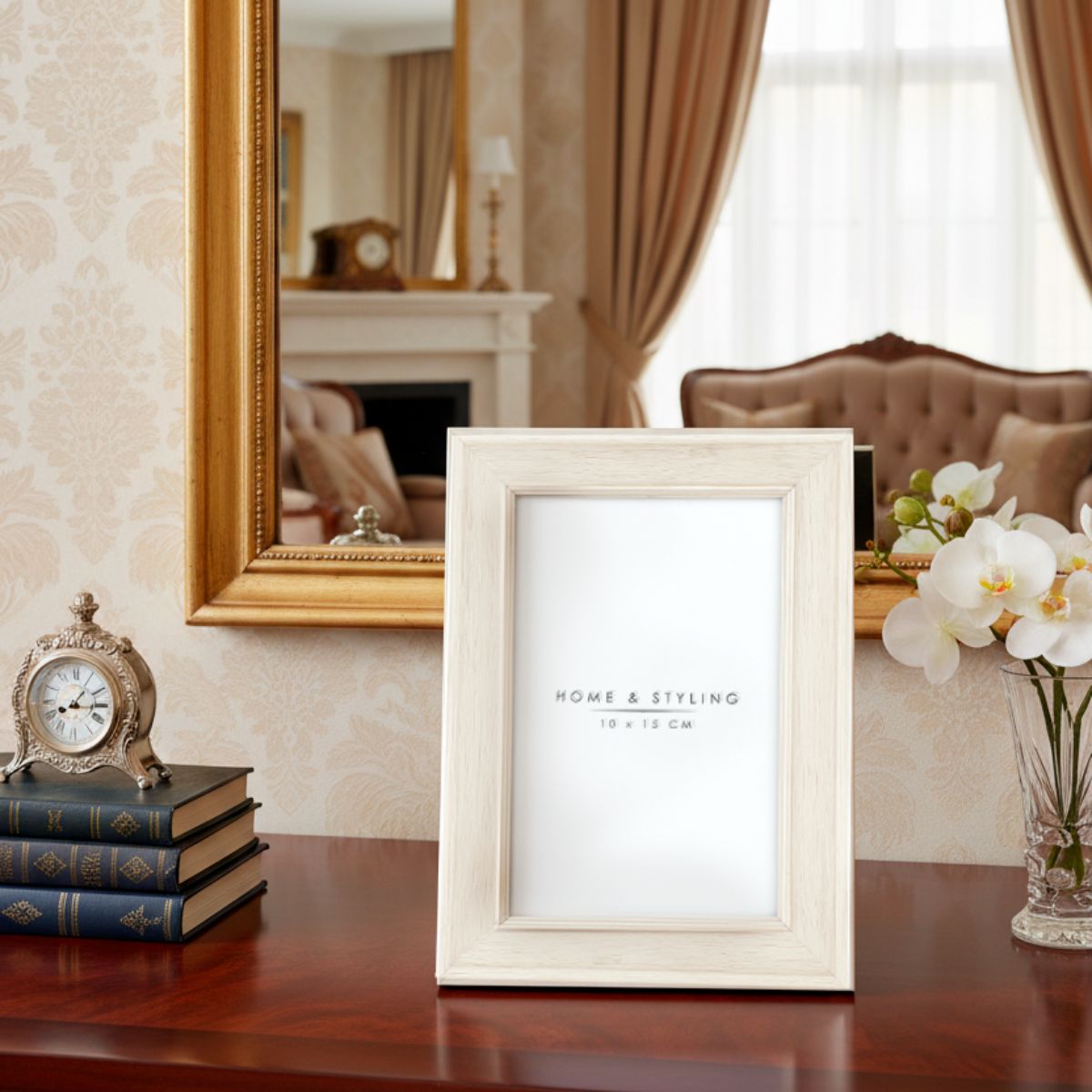 Portafotos de efecto madera fabricado en MDF de 10x15 cm, ideal para dar un toque especial a cualquier espacio de tu hogar y mantener siempre a la vista tus recuerdos más bonitos. Su acabado en color grisáceo le aporta un aire versátil y actual que combina fácilmente con todo tipo de estilos decorativos, desde los más modernos hasta los más clásicos. Es un marco sencillo pero con un punto elegante que lo convierte en un básico imprescindible, perfecto para colocar sobre una estantería, una cómoda o colgado en la pared. Gracias a su diseño práctico y atemporal, podrás integrarlo en cualquier estancia y usarlo tanto de manera individual como formando una composición con otros marcos de distintos tamaños y colores. Un accesorio decorativo funcional que nunca pasa de moda y que se convertirá en el soporte perfecto para tus mejores fotografías y recuerdos.