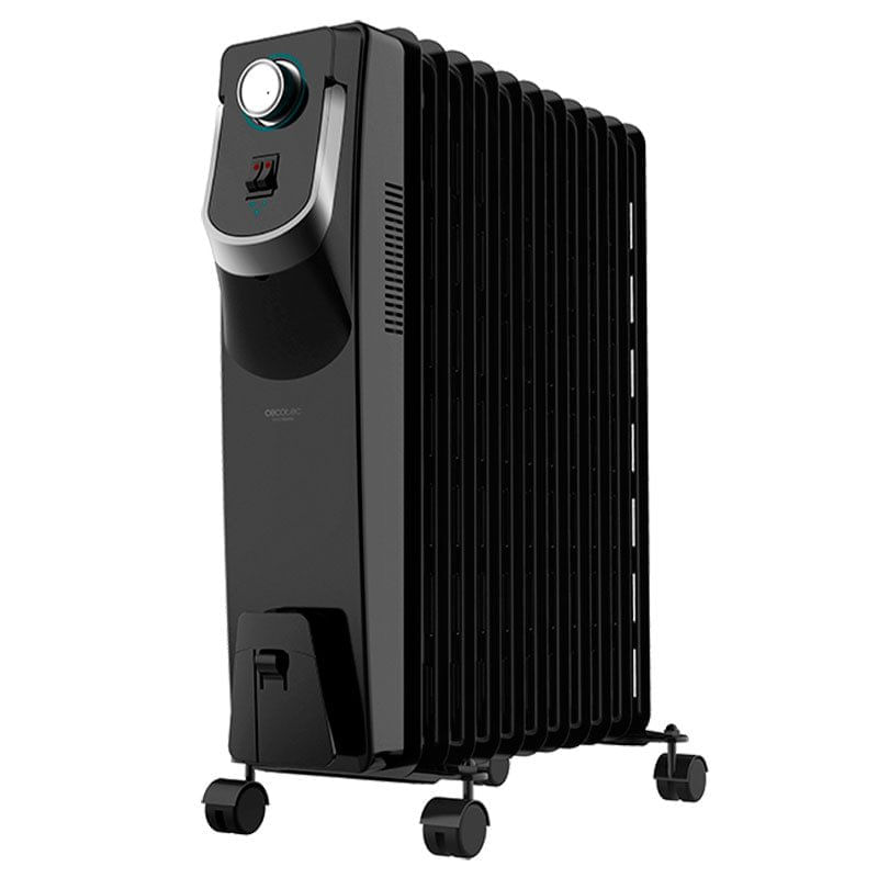 El radiador de aceite modelo Ready Warm 5870 Space 360º de la marca Cecotec cuenta con 11 módulos y una gran potencia máxima de 2500W. Su sistema Homogenic 360 ayuda a distribuir el calor de forma homogénea y su tecnología WarmSpace es capaz de calentar estancias de hasta 25m² de forma eficiente. Su termostato es regulable con 3 niveles de potencia para optimizar el consumo de energía: eco (1000W), media (1500W) y máxima (2500W). Cuenta con protección contra sobrecalentamiento y sensor antivuelco para cuidar tu seguridad. Es muy fácil de transportar gracias a sus ruedas multidireccionales y ahorrarás espacio utilizando su sistema para enrollar y almacenar el cable.