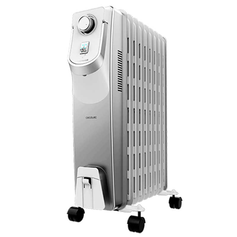 El radiador de aceite modelo Ready Warm 9000 Space 360º de la marca Cecotec cuenta con 9 módulos y una potencia de 2000W para calentar de forma rápida y eficiente la estancia donde lo ubiques. Gracias a su doble tecnología WarmSpace y tecnología 360º es capaz de calentar estancias de hasta 22 m² de forma óptima y eficiente. Desprende el calor de forma envolvente en 360º y se distribuye de forma homogénea por la estancia, lo que favorece que se mantenga durante más tiempo, logrando un calor más duradero y eficiente. Cuenta con termostato regulable con 3 niveles de potencia: potencia mínima de 800W (Eco), media de 1200W y máxima de 2000W. Es muy fácil de mover de un lado a otro gracias a sus ruedas y a su asa ergonómica. Además, es muy seguro y cuenta con protección contra sobrecalentamiento y sistema de apagado automático de seguridad.