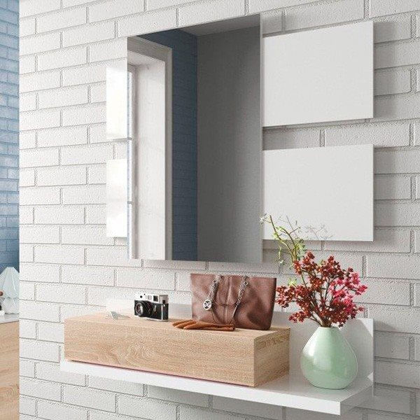 Este mueble recibidor combina elegancia y sencillez a partes iguales. El modelo Tekkan es de estilo nórdico gracias a la combinación de color que presenta. Es de diseño minimalista y presenta una estructura fabricada en melamina de alta calidad. Se compone de un tablero con respaldo y de un cajón superpuesto. El recibidor Tekkan tiene un tamaño estándar y viene acompañado de un original espejo con dos tablas melamínicas en color blanco. Resulta muy decorativo, al mismo, tiempo que se trata de un mueble muy práctico y funcional. Permite la combinación con todo tipo de decoración. ¡No lo pienses más y consigue el tuyo a un precio de chollo!