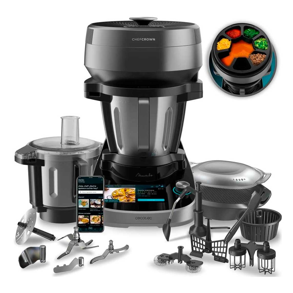 Descubre el revolucionario robot de cocina Mambo CooKing Total Gourmet de Cecotec, diseñado para llevar tu experiencia culinaria al siguiente nivel. Equipado con un motor de 2200W y la avanzada tecnología ChefCrown, este robot ofrece una capacidad inigualable con sus dos jarras de 4,5 litros cada una: la Jarra Unique y la Jarra Victory.