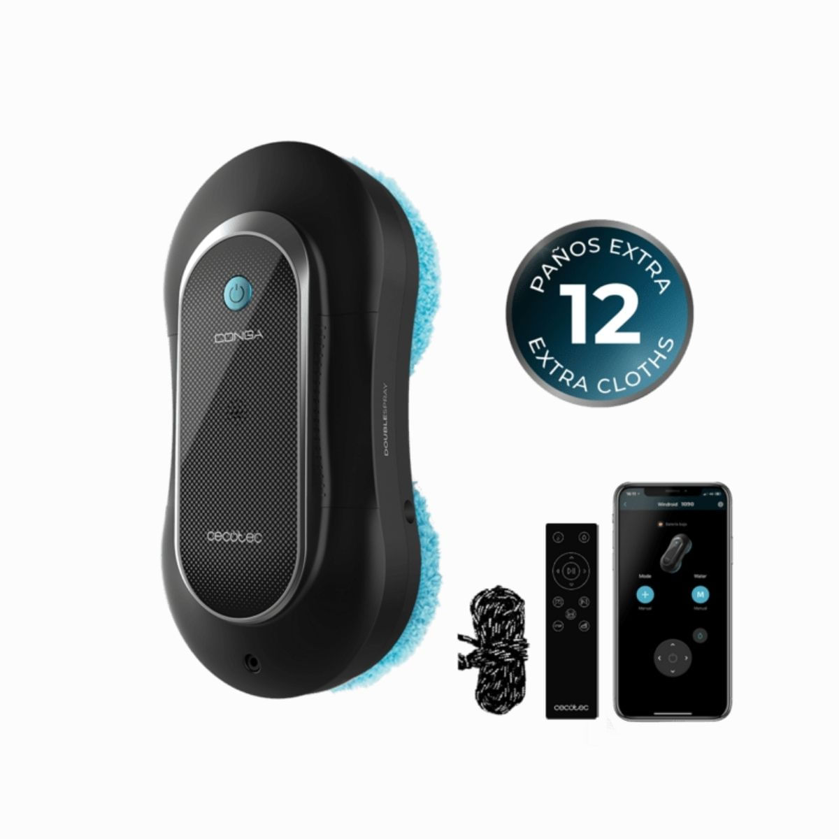 Además, cuenta con un radio de acción de 7,5 metros, lo que lo hace perfecto para ventanas grandes y superficies extensas como espejos, azulejos o pizarras. El control del Conga Windroid 1090 es total, ya sea mediante su mando a distancia o a través de la app de Cecotec, permitiendo gestionar cada detalle del proceso de limpieza desde cualquier lugar. La seguridad también está garantizada gracias a su cuerda de seguridad y a los 30 minutos adicionales de batería, manteniéndolo firme en el cristal y evitando caídas. Para mayor comodidad, incluye un kit de 12 mopas lavables y reutilizables, asegurando que cada limpieza sea completa y sencilla. Con este robot, mantener tus cristales y superficies siempre impecables se convierte en una tarea automática, rápida y eficaz.