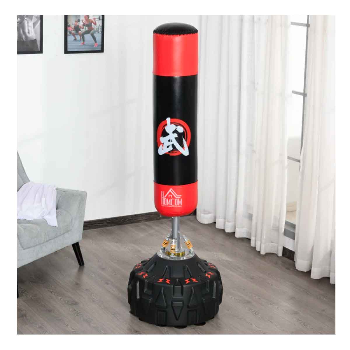 ¡Entrenar en casa nunca había sido tan sencillo! Luce músculos con este saco de boxeo de Homcom. Gracias a este saco de boxeo tendrás un sistema de entrenamiento integral, ayudándote a aliviar el estrés del día a día. Cuenta con un diseño de fabricación multicapa, en el que los amortiguadores son de tela, la espuma de alta densidad, la cubierta de PU y los tubos de acero inoxidable. También cuenta con un sistema técnico de absorción de impactos que lo hace muy silencioso. Sus 3 potentes muelles cuentan con amortiguación hidráulica, una goma y una placa fija de acero inoxidable. En la base incorpora 12 ventosas para mayor estabilidad y agarre. Además, se puede rellenar con 50kg de agua o 60kg de arena. Su montaje es sencillo y podrás utilizarlo en cualquier lugar de la casa. Los resortes giran 360º, de manera que resistirá perfectamente golpes y ruidos. Además, es apto para suelos planos. No lo pienses más y consigue este estupendo saco de boxeo a un precio bestial.