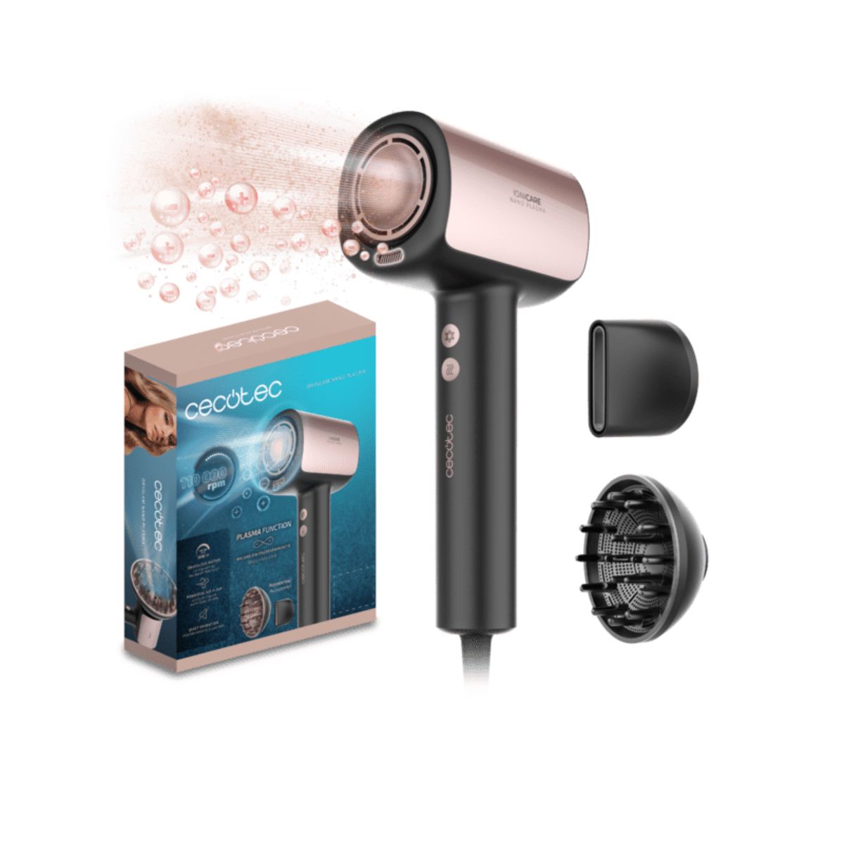 Incluye tres velocidades y tres niveles de temperatura, junto con una función de aire frío que ayuda a fijar el peinado y conservar su forma por más tiempo. Además, viene con dos accesorios clave: un concentrador, ideal para alisar y definir, y un difusor, perfecto para realzar rizos y ondas naturales. El Cecotec DryGlam Nano Plasma Aluminum combina tecnología avanzada y diseño funcional para ofrecer una experiencia de peinado personalizada, precisa y adaptada a todo tipo de cabellos. Una herramienta ideal para lograr resultados de nivel profesional desde casa.