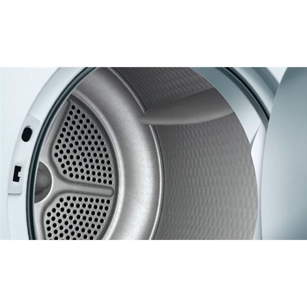 Secadora de condensación WTG84260EE con capacidad para 8kg. Dispone de la última tecnología del tambor VarioSoft de Bosch, capacitado para ofrecerte un cuidado mucho más delicado y eficiente de tu ropa, sea cual sea el tejido. Además, gracias a su display LED te ofrece un manejo y una experiencia más ágil, fácil y sencilla. Gracias a la superficie del tambor el cristal de la puerta y sus palas asimétricas, esta secadora hace que la ropa roce lo menos posible. Esto ayudado por el aire y la temperatura constante consigue que el secado sea el adecuado al tipo de ropa y tejido.