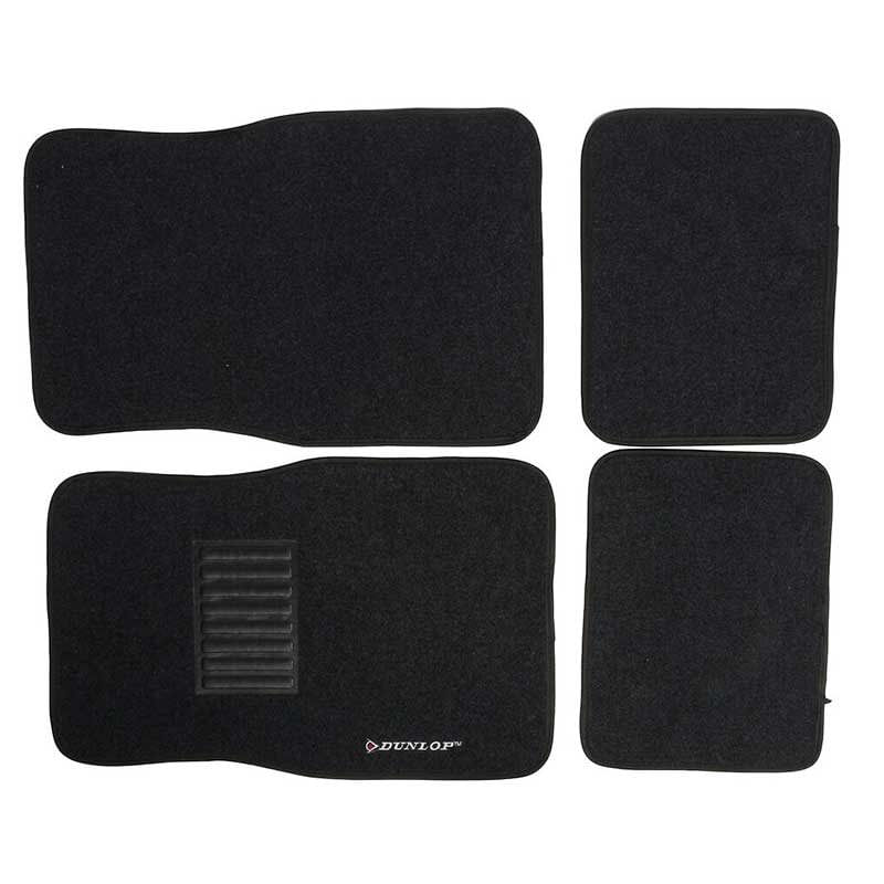 Los accesorios interiores del coche son importantes para aumentar la confortabilidad tanto del conductor como de los demás ocupantes. Un accesorio básico son las alfombrillas, que protegen de la suciedad el suelo de nuestro vehículo. Este juego de 4 alfombrillas de la marca Dunlop está fabricado en moqueta de terciopelo negro y cuenta con antideslizante en su parte inferior para evitar que se muevan. Además, la alfombrilla del conductor cuenta con talonera de seguridad. Su tamaño es universal.