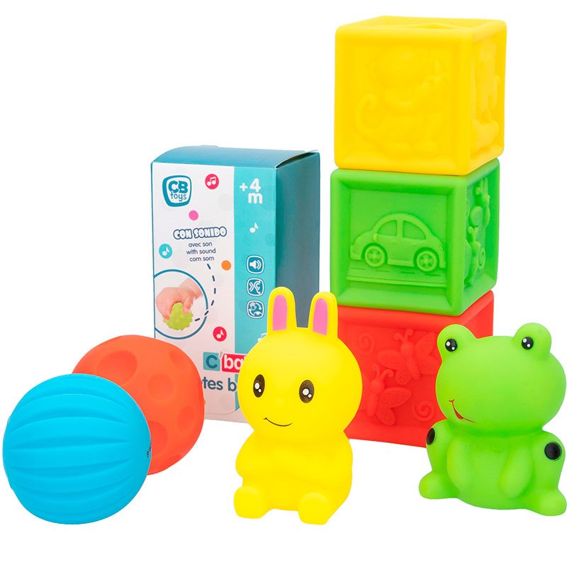 La hora del baño será mucho más divertida gracias a este set de juegos para bañera de la marca C’Baby. Contiene 7 piezas entre las que se encuentran: 1 conejito, 1 ranita, 3 cubos con dibujos en relieve y 2 mini pelotas. Están recomendados para niños mayores de 4 meses y te vendrán genial para entretener a tu bebé mientras lo enjabonas tranquilamente. Captarán la atención de tu pequeño al momento gracias a los sonidos que emiten cuando se aprietan. Además, son muy blanditos y suaves.