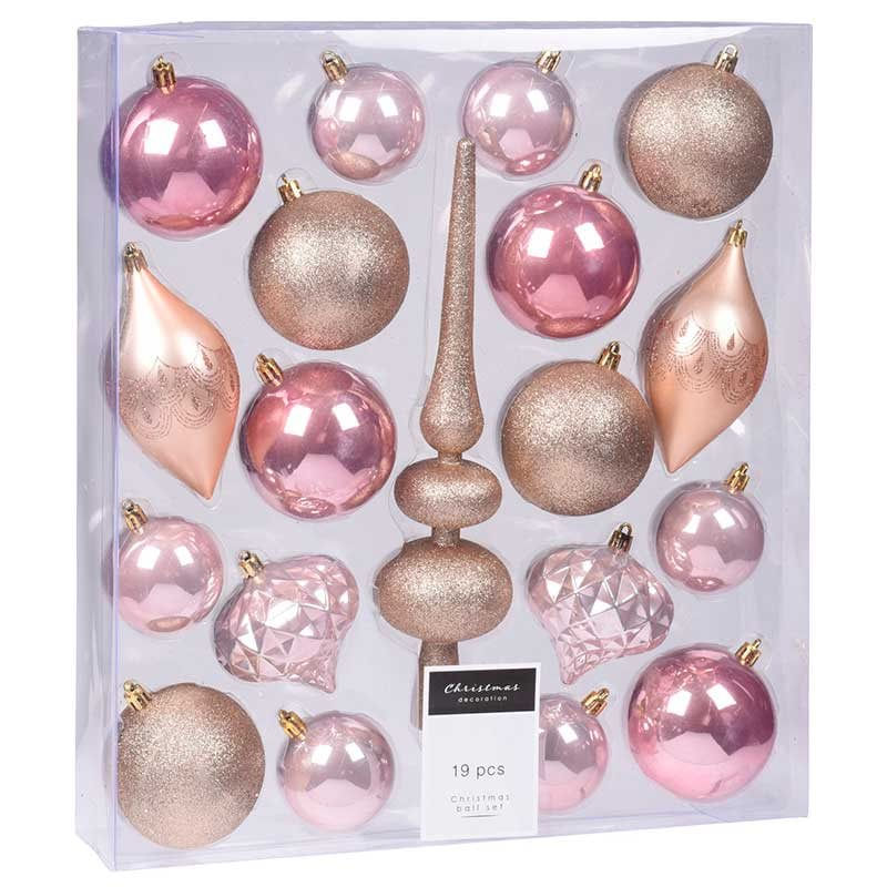 Set de 19 adornos navideños Home Sweet Home tonos rosa