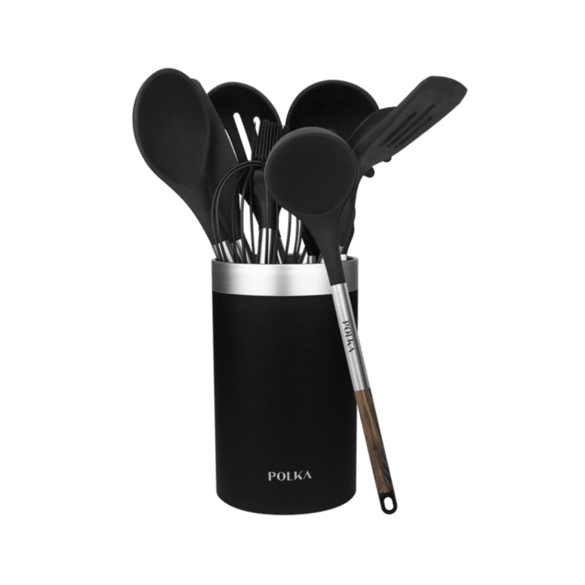 El set no solo es funcional, sino también seguro, ya que está fabricado con silicona, nylon y polipropileno, siendo 100 % libre de BPA y otros tóxicos. Su silicona antiadherente garantiza una fácil limpieza y es resistente hasta 220ºC, ideal para todo tipo de preparaciones. Además, viene con un holder que organiza todos los utensilios manteniendo tu espacio de cocina ordenado y accesible. Con el set Polka Excellence Force, tendrás la combinación perfecta de estilo y funcionalidad para disfrutar de cocinar como nunca.