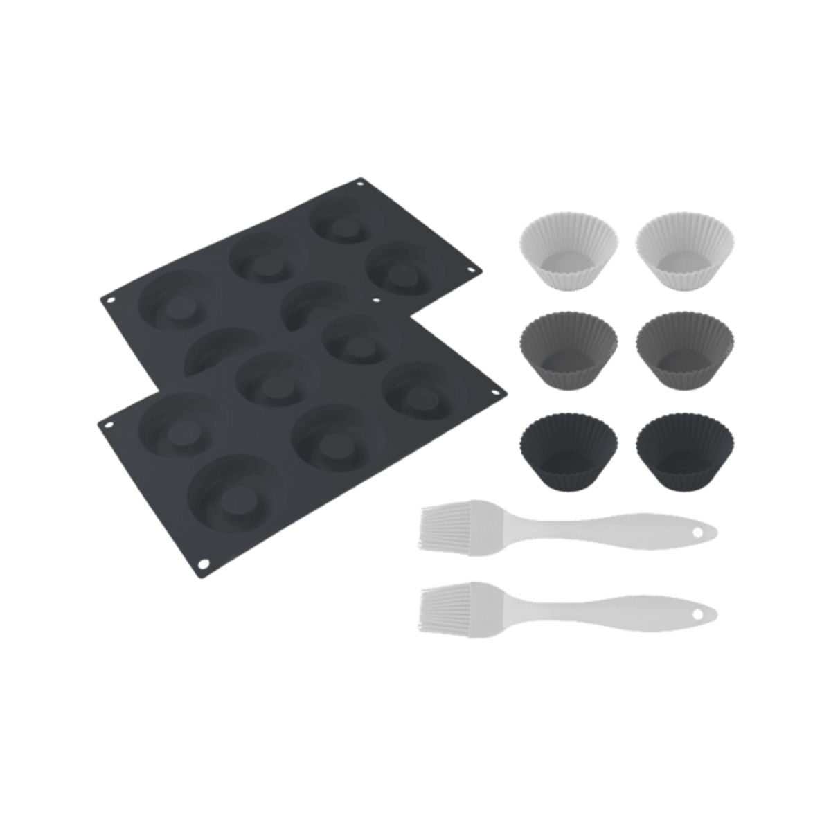 Saca tu lado más dulce con el set de repostería Cecotec Cecofry SweetBake XL, un kit completo pensado para quienes quieren disfrutar de recetas caseras sin complicarse. Este set incluye dos moldes de silicona para donuts, con capacidad para seis unidades cada uno, y seis moldes de silicona para magdalenas, ideales para preparar dulces esponjosos y sabrosos en casa. También incorpora dos pinceles de silicona perfectos para aplicar aceite, mantequilla o glaseado de forma uniforme y sin manchar de más.