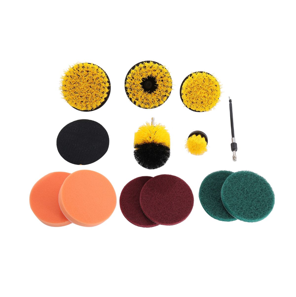 Olvídate de frotar sin éxito la suciedad más incrustada con este completo y práctico set de cepillos para taladro. Consta de 13 piezas diseñadas para facilitar la limpieza de grandes superficies o aquellas que requieren mayor potencia para eliminar la suciedad. El set incluye 6 cepillos de distintas formas y diámetros, 6 estropajos adaptables al cepillo plano que se incluye y un adaptador extensible para alcanzar los rincones más difíciles. Sus cerdas de nailon, flexibles y resistentes protegen las superficies sin rayarlas, permitiendo limpiar muebles, carrocerías o encimeras sin dañarlas. Gracias al movimiento rotatorio del taladro, la suciedad se elimina en una sola pasada, logrando resultados impecables en cuestión de minutos. Hazte ya con tu set y convierte tus rutinas de limpieza en una autentica gozada.