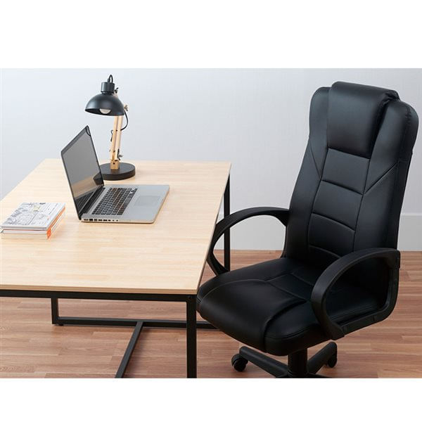 La silla de despacho modelo Henry está fabricada con materiales de alta calidad, una estructura robusta que le da forma y resistencia, soportando hasta 100 kilos. Consta de un tapizado hecho con símil de piel, lo que le da suavidad y comodidad, con un diseño especial en el respaldo aportando así mayor comodidad. Tiene un aspecto lujoso por lo que le aporta carácter y estilo a la habitación donde la coloques. Cuenta con un sistema giratorio que permite moverla hasta 360 grados con facilidad y 5 ruedas inferiores. Tiene varios sistemas como el de reclinarse y mantenerse en el ángulo que desees de forma estática por medio de su sistema basculante con bloqueo. Limpiarla es muy fácil gracias a su tejido y su montaje es rápido y sencillo con las instrucciones que incluye el paquete.