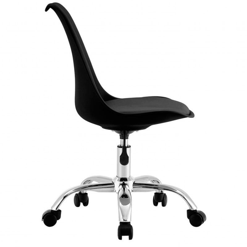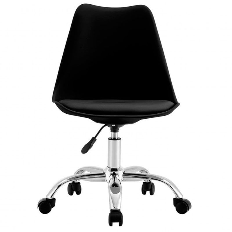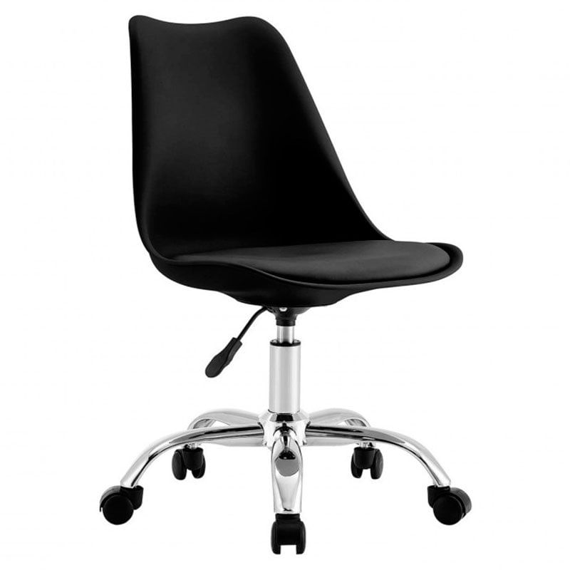 La silla de escritorio modelo Eyre de la marca 7house viene en un combinable color negro y es ideal para todas aquellas personas que pasan largos periodos de tiempo sentadas ya sea por trabajo o por ocio. Está fabricada con estructura en polipropileno y asiento de espuma de poliuretano, lo que proporciona un asiento ergonómico que se adaptará perfectamente a la forma de tu espalda. Dispone de patas de acero cromado con 5 ruedas auto bloqueantes. Gracias a su estilo nórdico combinará a la perfección con cualquier estilo decorativo. Para limpiarla bastará con pasar un paño húmedo por su superficie.