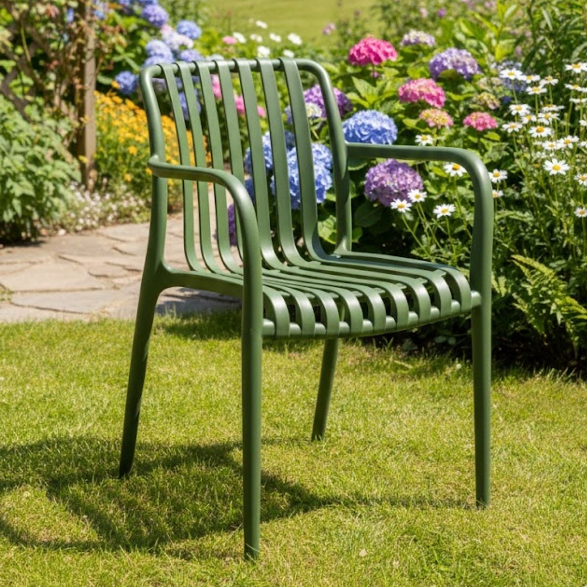 Silla de exterior modelo Niágara, una propuesta con estilo butaca pensada para quienes buscan comodidad sin renunciar al diseño. Su asiento ancho invita a relajarse y disfrutar del momento, ya sea en la terraza, el jardín o junto a la mesa exterior. Incorpora reposabrazos que aportan un extra de confort y refuerzan su estética envolvente, perfecta para crear rincones acogedores con un toque decorativo. Niágara es una silla combinable que encaja fácilmente en diferentes ambientes, desde espacios modernos hasta zonas más naturales o mediterráneas. Su diseño equilibrado la convierte en una pieza versátil que suma presencia sin recargar el entorno.