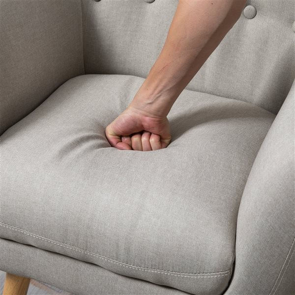 Elige este cómodo sofá individual para tu sala de estar, dormitorio, rincón de lectura… o incluso para la entrada de tu oficina o estudio. Su estilo clásico y moderno a la vez, con botones con mechones, no dejará indiferente a nadie. Cuenta con un acolchado extra grueso y tapizado de lino, la opción ideal para sentarse cómodamente y relajarse por completo después de una larga jornada laboral. ¡No te arrepentirás!