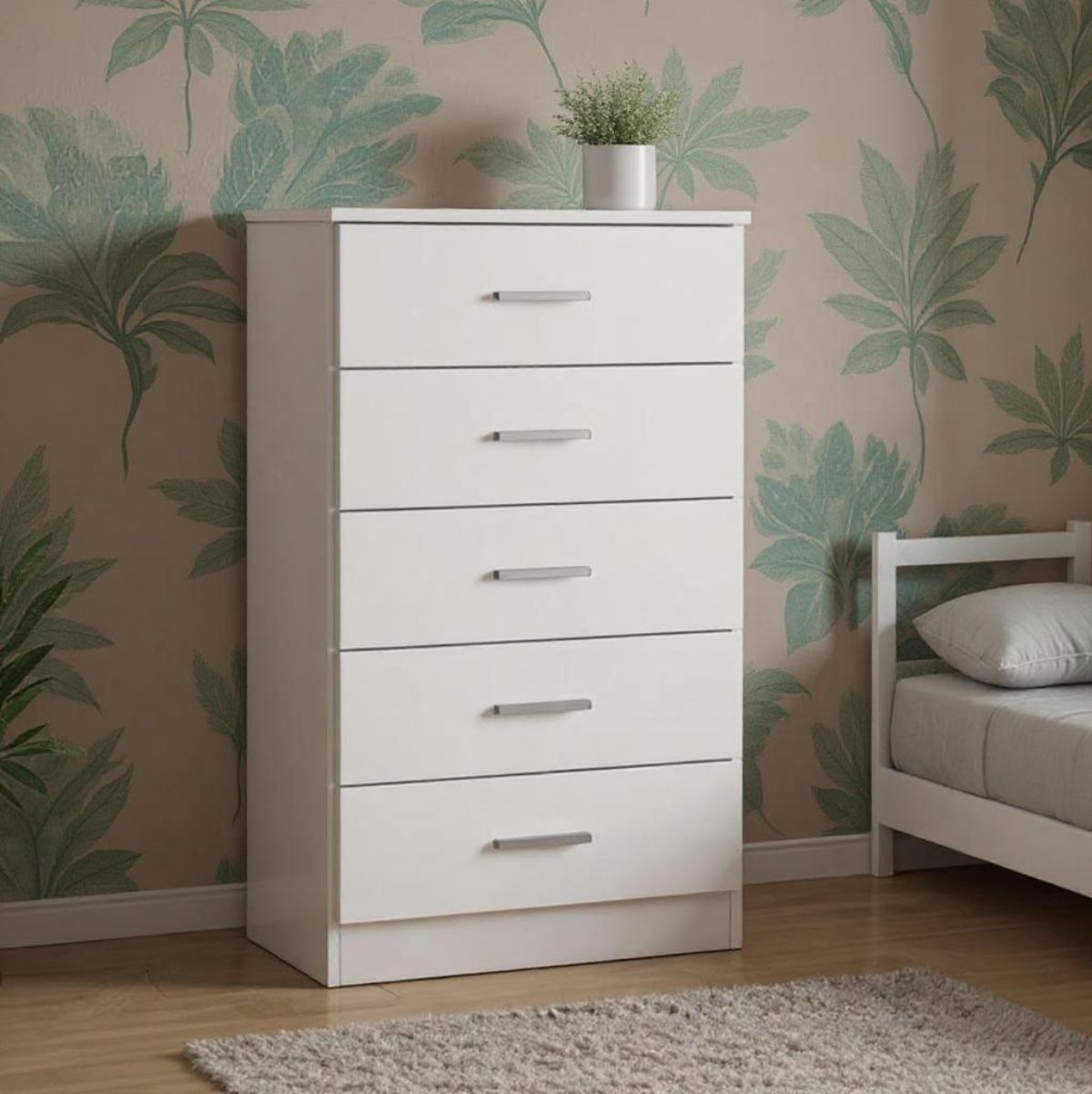El sinfonier modelo Couple es una opción ideal para ganar espacio de almacenaje, especialmente para guardar la ropa que no te entra en el armario del dormitorio, ya sea de matrimonio o juvenil. Su diseño cuidado y su buen acabado lo convierten en un mueble práctico y decorativo, perfecto para el día a día. Está fabricado en melamina de alta calidad, un material resistente y fácil de limpiar, lo que lo convierte en una opción duradera para cualquier hogar. Dispone de 5 cajones espaciosos, equipados con guías que aseguran una apertura fluida, y tiradores que facilitan su uso diario con total comodidad.