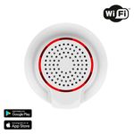 Sirena inalámbrica para sensores y alarmas con tecnología WIFI. Control mediante smartphone vía APP. Conecta tu sirena inalámbrica con otros sensores WIFI (sensor de apertura de puertas o ventanas, sensor de movimiento o sensor de humos) y esta se encargará de amplificar la señal de alarma cuando el sensor del dispositivo enlazado se active. Su diseño compacto y la ausencia total de cables permiten su fácil colocación en cualquier lugar. Alarma de 100 dB de alta potencia. Bajo consumo de batería (durabilidad de hasta 1 año) recargable por MicroUSB. Alcance Wifi hasta 45 metros. Compatible con iOS y Android. - Color: Blanco - Fácil instalación. - Alcance wifi 45 metros - Control mediante APP descargable - Totalmente compatible para su uso en iOS y Android - Diseño compacto - Su reducido tamaño - Alarma de 100 dB - Tono de alarma de gran potencia - Dimensiones: 70 x 30 mm