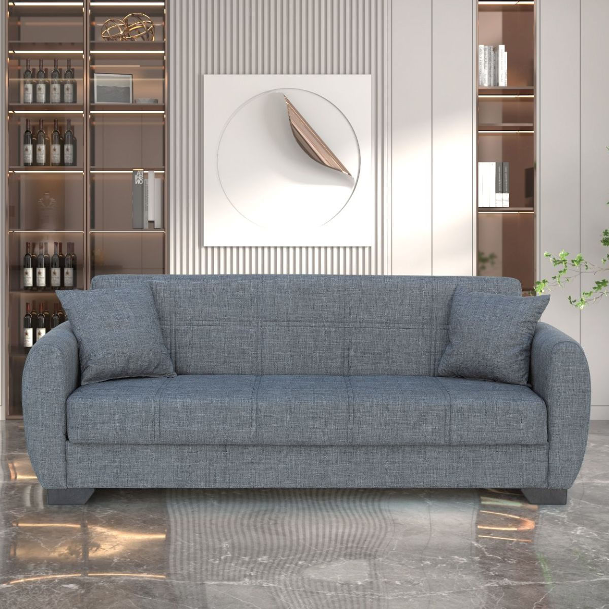 Sofá cama Clic Clac modelo Shargun diseñado para quienes necesitan un mueble moderno, práctico y cómodo sin perder estilo. Su estética minimalista en color gris aporta un toque contemporáneo que encaja en salones, estudios, despachos, habitaciones de invitados o pisos de alquiler, gracias a su versatilidad visual y a sus líneas rectas con acolchado uniforme y patas metálicas que aportan un aire actual. Este sofá cama ofrece la funcionalidad del sistema Clic Clac, que permite convertirlo en cama en solo un gesto, ideal para resolver noches improvisadas o disfrutar de un descanso extra cuando lo necesites. El asiento cuenta con un acolchado de densidad equilibrada que ofrece firmeza y confort, mientras que el respaldo ergonómico ayuda a mantener una postura relajada durante su uso diario. La superficie es estable y agradable al tacto, pensada para quienes buscan comodidad sin complicaciones. Sus medidas de 84 cm de alto x 215 cm de ancho x 85 cm de profundidad permiten que una persona descanse cómodamente, convirtiéndolo en una pieza funcional tanto en estancias amplias como en espacios reducidos donde aprovechar bien cada metro es clave. La estructura reforzada y las patas metálicas garantizan estabilidad y durabilidad, soportando el uso frecuente sin perder rendimiento con el paso del tiempo. Es una solución ideal para salones modernos, estancias juveniles, oficinas y despachos, habitaciones de invitados, apartahoteles y cualquier espacio multifuncional donde se necesite un mueble práctico con estilo actual.