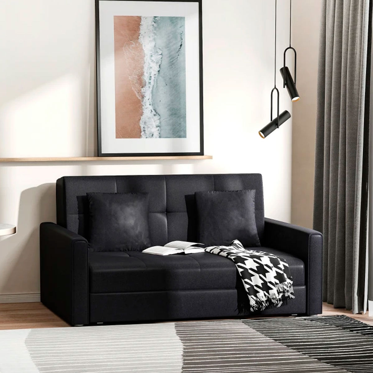 El sofá-cama Ulises de la marca Homcom es un complemento versátil y funcional que combina a la perfección comodidad y practicidad. Está fabricado con materiales de alta calidad, lo que le confiere una gran resistencia y durabilidad. La estructura del sofá está fabricada en madera maciza de eucalipto, un material natural y resistente que le aporta estabilidad y firmeza. El tapizado, por su parte, está realizado en tejido polialgodón, un material suave y agradable al tacto que es fácil de limpiar. El sofá-cama Ulises se convierte rápidamente en cama, lo que lo convierte en una solución ideal para salones pequeños y medianos. ¡Ahora podrás darles cobijo a tus invitados! El sofá cuenta con un espacio de almacenamiento oculto debajo del asiento, que es ideal para guardar mantas, cojines o cualquier otro objeto que necesites tener a mano. El acolchado del asiento y el respaldo es generoso, lo que garantiza una gran comodidad para que puedas disfrutar de tus momentos de sofá como nunca antes. El sofá-cama Ulises incluye 2 cojines decorativos que contribuyen a crear un ambiente acogedor y confortable. El sofá es resistente, combinable, duradero y versátil, lo que lo convierte en una opción ideal para cualquier hogar. ¡Consíguelo al mejor precio!