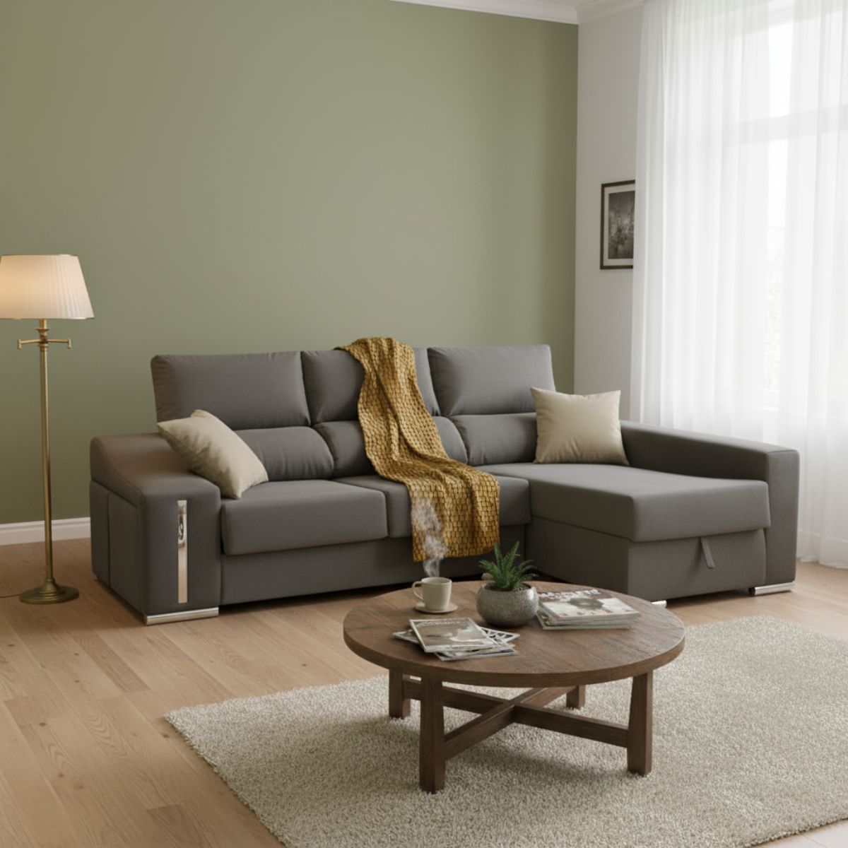 El sofá chaiselongue Ares es un modelo que combina estética, versatilidad y comodidad. Se trata de un sofá fabricado con un armazón de madera de pino y unos asientos rellenos de espuma de 25kg de densidad suave con muelle ensacado. Gracias a sus grandes dimensiones, tiene una capacidad de 3 personas con espacio de sobra para descansar y moverse libremente. Cuando decimos que es polivalente no solo nos referimos a que sus asientos sean deslizantes y sus respaldos reclinables, sino que debajo del chaiselongue encontramos un arcón de almacenamiento para que puedas guardar todo tipo de objetos, como mantas o menaje del salón. Además, el sofá trae 2 cojines de diseño y 2 prácticos taburetes para ofrecer 2 asientos extra y que se guardan debajo del propio asiento, por lo que no ocupan nada de espacio. De tacto suave, este sofá Ares es ideal para ver la televisión y desconectar de la rutina. Si buscas un sofá de calidad con un precio a lo bestia, no esperes más y hazte con tu chaiselongue Ares.