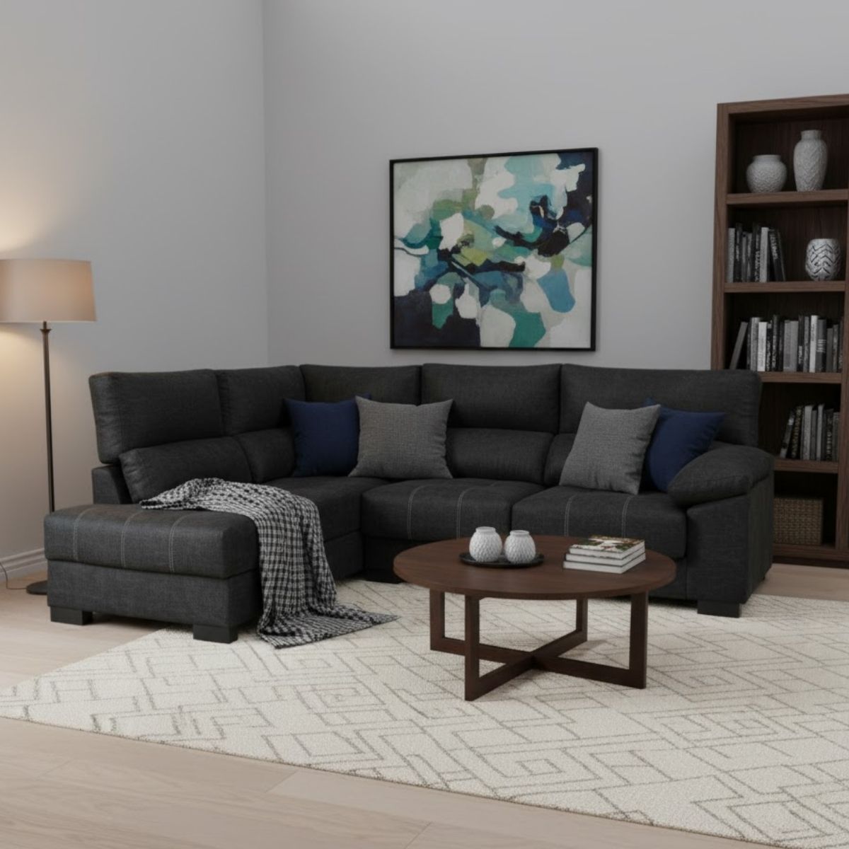 El sofá chaiselongue modelo Meridien combina confort, amplitud y un diseño elegante pensado para disfrutar al máximo del descanso. Con unas generosas medidas de 282 cm de ancho, 100 cm de alto, 90 cm de profundidad en el sofá y 195 cm en la chaiselongue, ofrece espacio de sobra para relajarse solo o en compañía. Su estructura de madera de pino y MDF garantiza solidez y durabilidad, mientras que los asientos de gomaespuma de 30kg proporcionan una comodidad firme y envolvente. El respaldo y los brazos, rellenos de fibra 100%, aportan un extra de suavidad y confort. Además, los asientos deslizantes y los cabezales reclinables permiten adaptar la posición a tu gusto para disfrutar de una experiencia totalmente personalizada. Su diseño tipo rinconera, con respaldo también en la zona del chaiselongue, crea un espacio acogedor y funcional que se integra fácilmente en cualquier salón moderno. El sofá Meridien es sinónimo de estilo, calidad y relax absoluto.