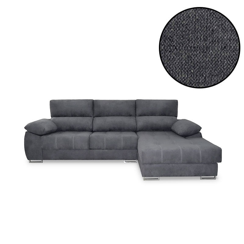 ¡Te encantará la comodidad y confort que te ofrecerá este estupendo chaiselongue! El modelo Paolo presenta un elegante diseño con pespuntes blancos y tapizado en tela de microfibra bronx 100%, de tacto suave y muy resistente al uso diario. La confortabilidad de este sofá radica en sus asientos fabricados con gomaespuma de gran densidad y en la fibra hueca siliconada de sus respaldos que garantizan una postura confortable. Posee cabezales reclinables, asientos deslizantes, armazón de madera de pino y unas originales patas metálicas. Pero, sin duda, lo más llamativo de este chaiselongue es la conexión USB que incorpora en uno de sus brazos para poder cargar tu móvil, Tablet, portátil o lo que necesites sin levantarte del sofá. ¡No pierdas esta oportunidad en Embargosalobestia!