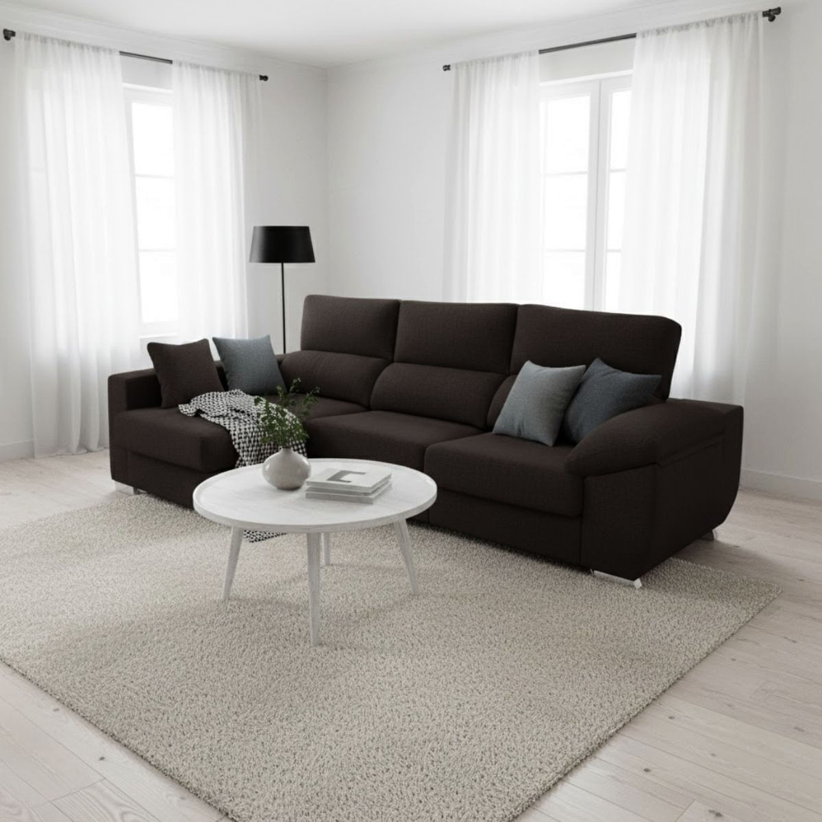 Experimenta el confort del sofá chaiselongue modelo Ponza, una pieza diseñada para maximizar tu descanso y acompañar tus momentos de relajación. Sus tres amplias plazas incorporan asientos deslizantes de gran recorrido y cabezales reclinables que se ajustan suavemente a tu postura, ofreciendo un apoyo continuo y ergonómico. La estructura, fabricada en madera de pino combinada con tablero de partículas, garantiza solidez y durabilidad, conservando la estabilidad del mueble con el paso del tiempo.