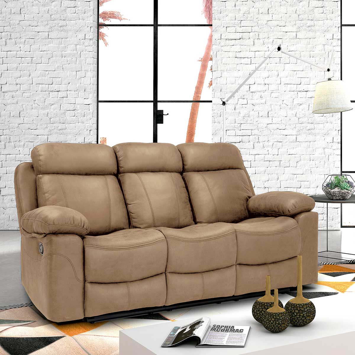 El sofá relax modelo Menfis te proporcionará una sentada muy confortable y una postura relajante en todo momento. Está tapizado en tela Nolia que le da un efecto de polipiel muy elegante. Su estructura está fabricada en madera maciza y sus asientos son de espuma suave de 28kg reforzados con muelles ensacados. Cuenta con una palanca en cada uno de los laterales con la que accionarás de manera manual la apertura de los asientos para que se eleven los reposapiés y se reclinen los respaldos. No te pierdas este fantástico sofá a un precio a lo bestia.