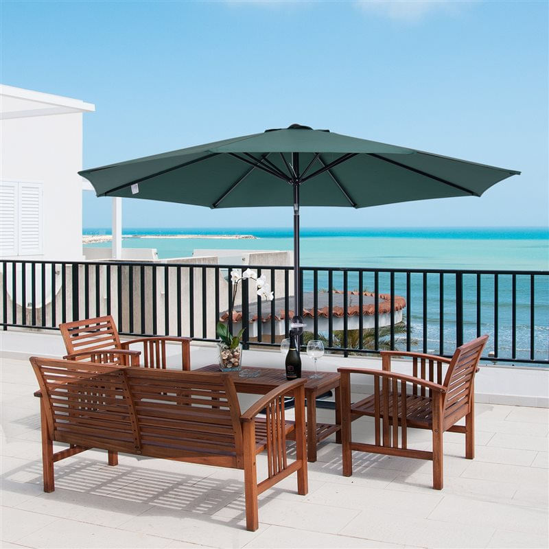 Esta sombrilla inclinable con manivela en color verde es la opción perfecta para darte una buena sombra. Se puede ajustar el ángulo para protegerte del sol, se abre fácilmente mediante una manivela y es muy ligera. Su estructura es metálica, muy resistente y estable. La tela está fabricada en poliéster con una densidad de 180g/m², resistente al agua y a los rayos UV, permitiendo que disfrutes de los días bajo la sombra en días soleados. El parasol con 300 cm de diámetro, 245 cm de altura y su sistema de 8 varillas ofrece un amplio espacio de sombra. Gracias a su manivela, te resultará muy cómodo abrir y cerrar el parasol y elegir el ángulo deseado. Como es una sombrilla muy ligera y se desmonta, puedes llevarla fácilmente de un lugar a otro.