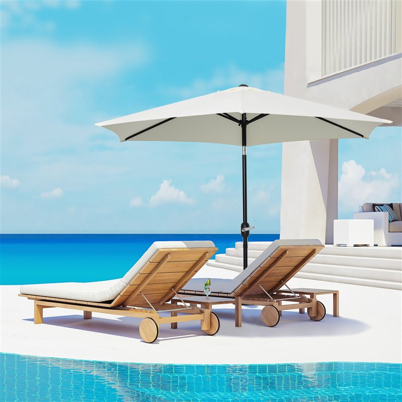 ¿Necesitas una sombrilla moderna y funcional? Esta sombrilla destaca por su ángulo ajustable y su fácil apertura. Puedes utilizarla en una mesa o solamente con una base. Está diseñado para que disfrutes del aire libre en un día soleado, fabricado con material de alta calidad que garantiza una resistencia óptima. Se abre y se cierra fácil y rápidamente girando la manivela manualmente. Además, su ángulo es ajustable a través del botón de inclinación para protegerse correctamente del sol en todo momento. Es de aleación de zinc muy resistente. El mástil es de aluminio y las 6 varillas de acero garantizan una gran estabilidad y resistencia a la intemperie.