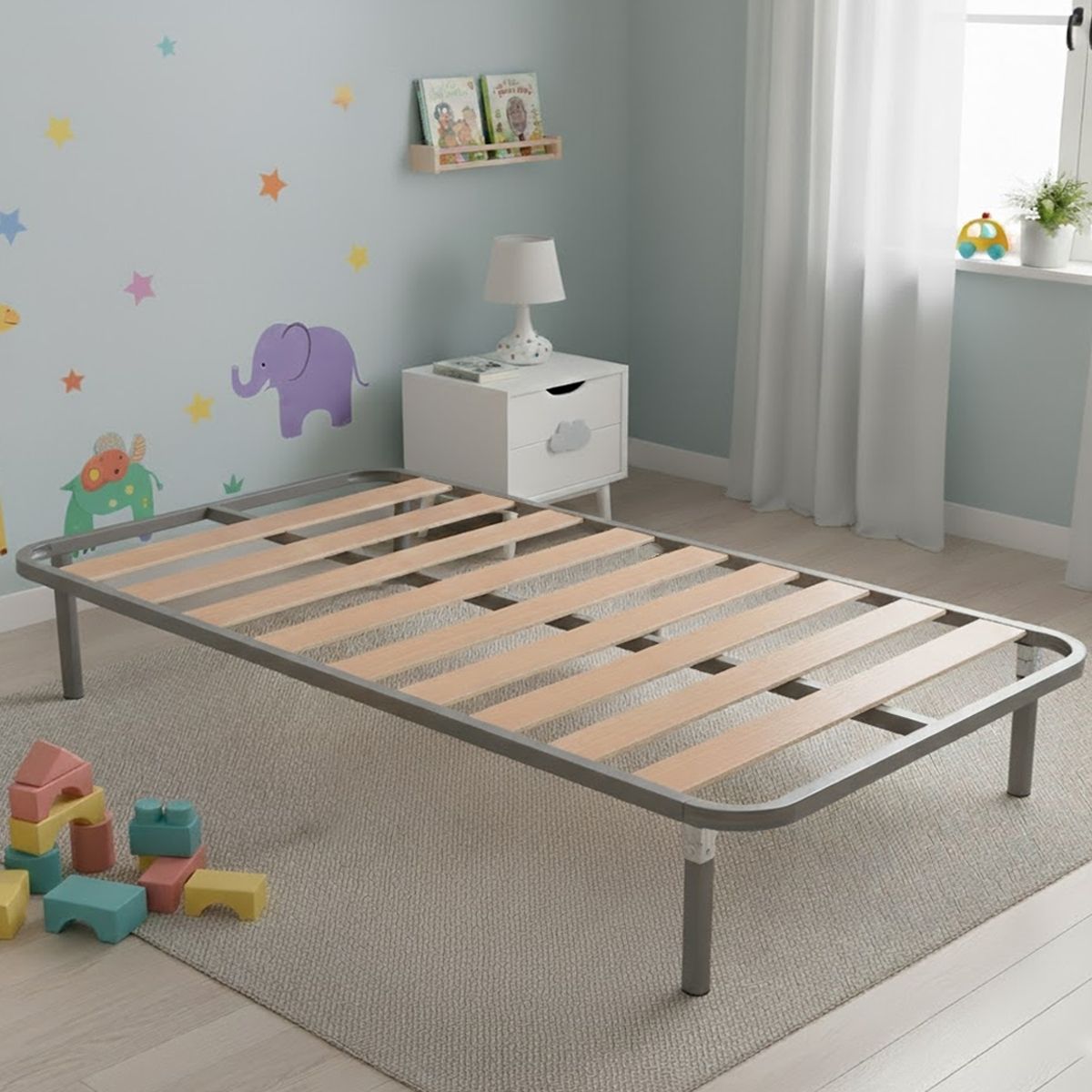 Este kit de somier de lamas de madera con patas es la forma perfecta de garantizar tu descanso. El somier conjuga resistencia y flexibilidad, puede utilizarse como base para poner cualquier tipo de colchón. Fabricado con bastidores de acero perfil 30x30. Tiene 8 láminas de madera de chopo de 100 mm de ancho y 7 mm de grosor, cada una de ellas, embutida en el bastidor. Las patas son de acero de 30x30 y van cogidas a la estructura por un sistema de grapa que va abrazado al somier y tienen una altura de 25 cm. Tanto el somier como las patas están acabados con pintura epoxi, una resina de alta calidad, muy versátil, que se utiliza para cubrir y proteger algunas superficies que requieren un extra de protección. La cama tiene una barra central que refuerza a las lamas.