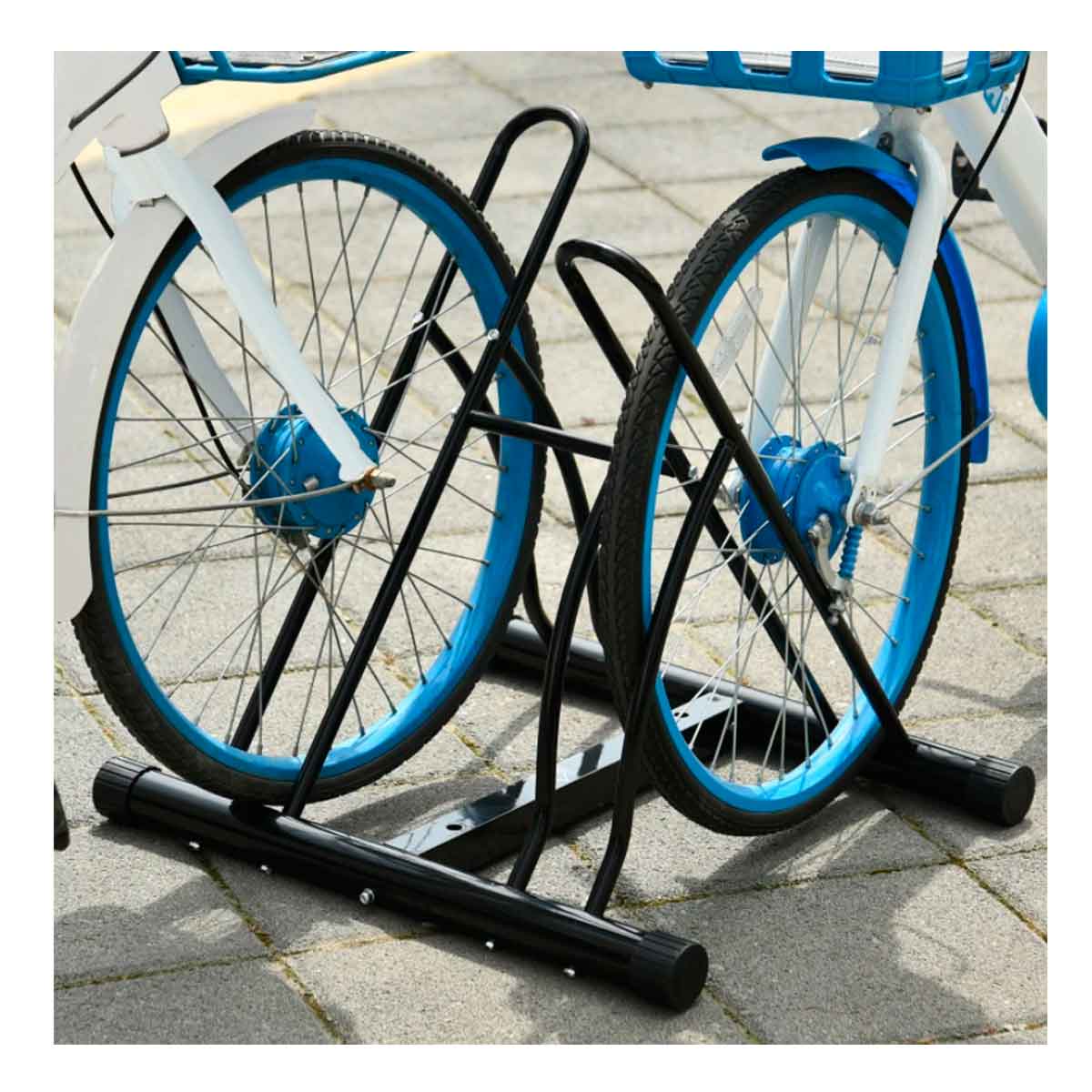 ¿Te gusta ir en bicicleta, pero no sabes dónde y cómo dejarla cuando entras a algún establecimiento? Te presentamos este estupendo soporte de estacionamiento de Homcom con capacidad para 2 bicicletas. Su estructura está fabricada con acero tubular, y cuenta con unas almohadillas especiales de PVC para evitar darle mayor estabilidad al soporte y evitar arañazos. Se adapta a neumáticos con un ancho de <2,5” (6,5 cm). No lleva abrazaderas ni soportes, con lo que podrás anclar tu bicicleta fácilmente. Es la opción perfecta para tener en el garaje, puertas de comercios, o cualquier zona para favorecer el uso de este medio de transporte. ¡No lo pienses más y consigue este estupendo soporte de estacionamiento para 2 bicicletas a un precio de chollo!