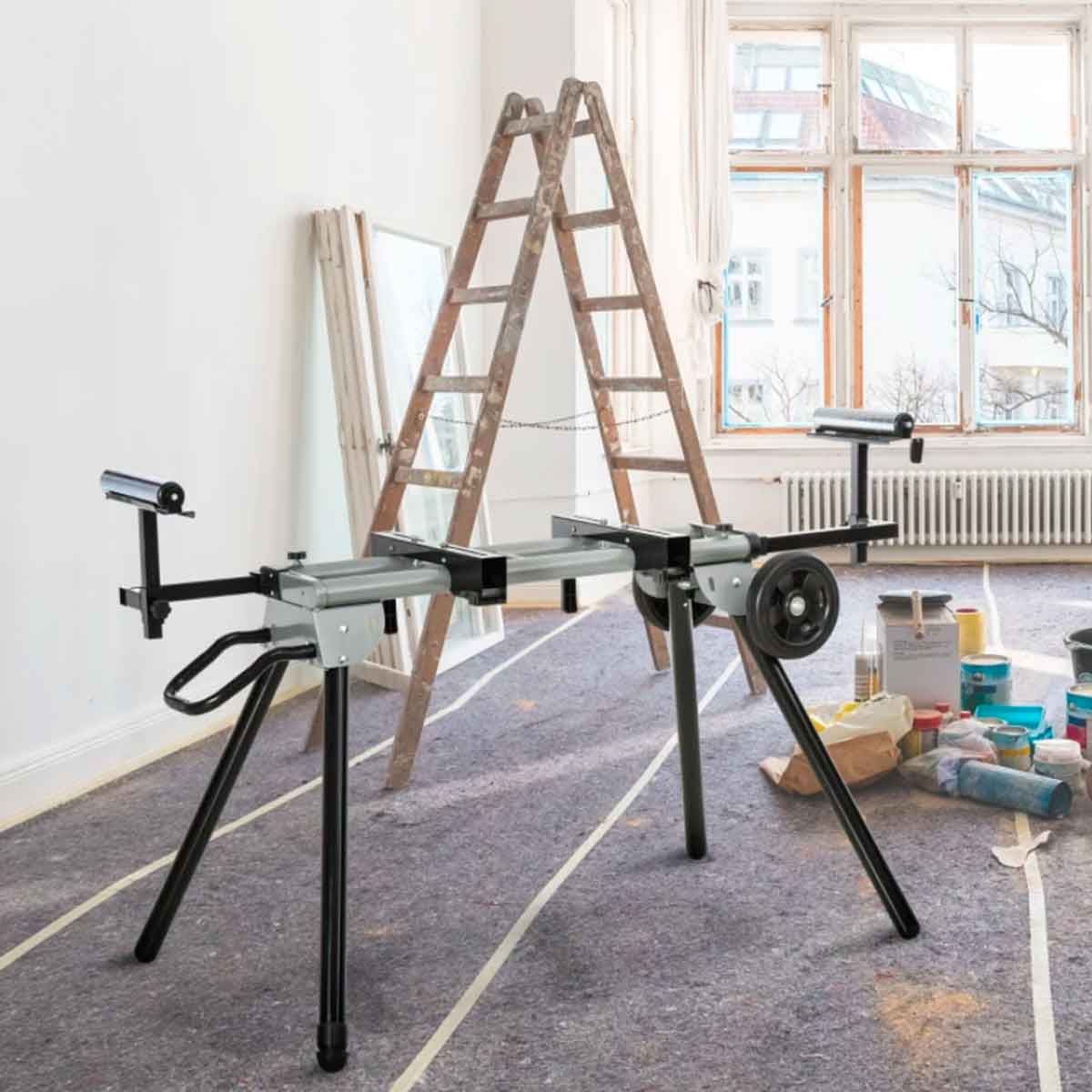 Con esta estupenda mesa de sierra ingletadora de Durhand podrás colocar tu sierra y contar con un sistema de soporte fuerte y resistente pasar usar tu sierra con total seguridad. Está fabricada con metal y PU, materiales muy resistentes, y capaz de soportar hasta 150kg de peso. Es 100% ajustable gracias a sus 2 rodillos, los cuáles se pueden ajustar tanto en altura como en extensión, según tus necesidades. Una de las patas es regulable para proporcionar estabilidad incluso en suelos irregulares. Es muy fácil de montar, ya que, gracias a sus dos soportes de liberación rápida, podrás poner y quitar la sierra de forma rápida. Cuenta con un espacio de trabajo regulable de 5,5 a 36 cm, lleva ruedas y un asa de transporte. Es compatible con la mayoría de las marcas de sierras ingletadoras como Evolution, Makita, DeWalt, Bosch, Ryobi y Einhell. ¡No lo pienses más y zazte con la tuya a un precio bestial!