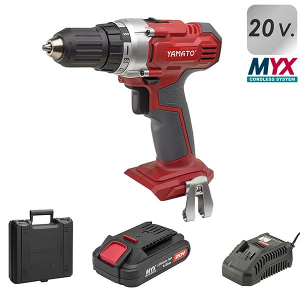 Taladro atornillador Yamato 20V batería de litio con maletín rojo