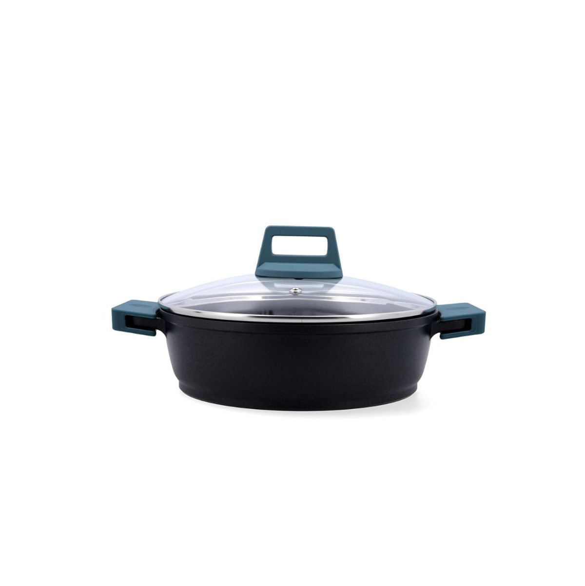 La tartera modelo Confort de la marca Quid es una opción versátil, resistente y elegante para el día a día en la cocina. Fabricada en aluminio fundido de alta calidad, ofrece una excelente conducción del calor y una cocción uniforme de los alimentos. La podrás encontrar en múltiples diámetros y capacidades, es ideal para preparar guisos, salsas y platos familiares con total comodidad. Su diseño redondo en color azul y negro con acabado mate le aporta un toque moderno y sofisticado que combina fácilmente con cualquier estilo de cocina. Gracias a su fondo ferrítico, esta tartera es compatible con todo tipo de cocinas, vitrocerámica, inducción, eléctrica y de gas, ofreciendo una adaptabilidad completa.