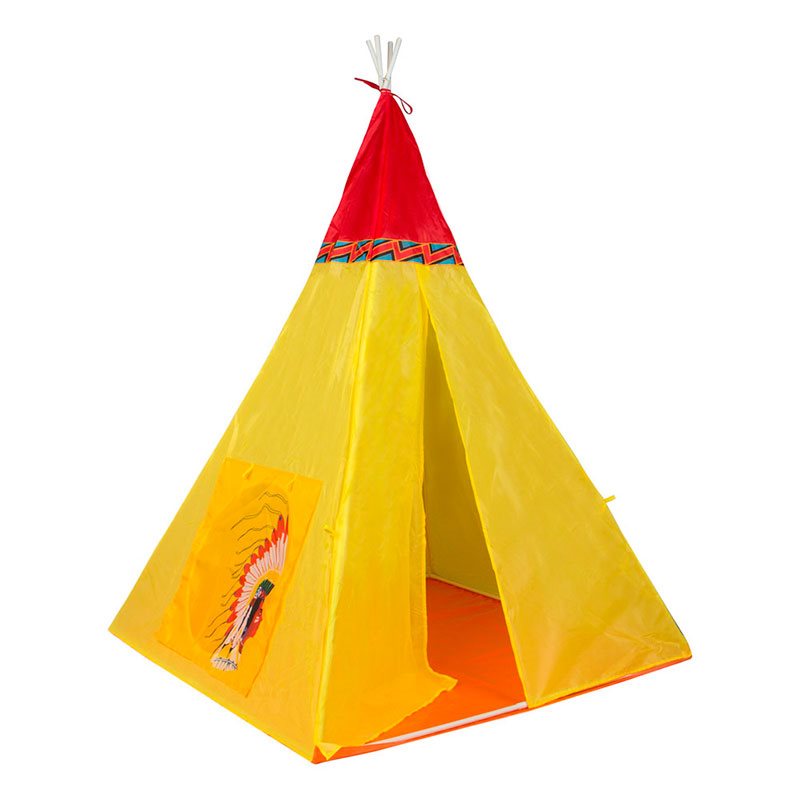 Tus hijos vivirán auténticas aventuras haciendo de indios y vaqueros con esta tienda tipi de la marca Kidz Corner. Cuenta con la forma tradicional de las tradicionales tiendas de campaña de los indios, su estructura está fabricada con tubos de PVC y el tejido que la cubre es de color amarillo y naranja. Tiene una puerta con doble cortina y una ventana con cortina enrollable que podrás dejar abierta para conseguir mayor visibilidad. Este tipo de juguetes desarrollan la imaginación, la creatividad, la orientación espacial y la socialización. Su uso está recomendado para niños mayores de 3 años.