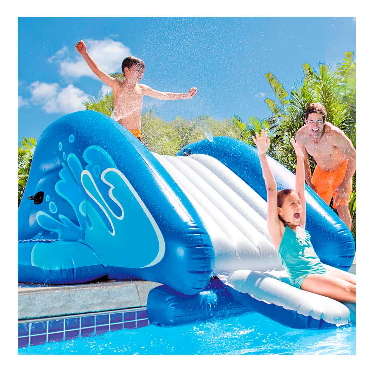 ¿Te gustaría que tus peques aprovecharan al máximo tu piscina durante esta temporada? ¡Con este tobogán acuático hinchable seguro que lo harán! Este estupendo tobogán está compuesto por una pared de subida con 4 orificios para introducir el pie y poder subir a la cima, desde donde podrán lanzarse por la rampa tobogán hasta el agua. Cuenta con 2 paredes laterales para mayor seguridad y sujeción. También incluye un apoyo para ajustar el tobogán al borde y un asiento al final para amortiguar el impacto al llegar al agua. Dispone también de 6 asas de agarre y 3 bases hinchables para mayor estabilidad. Cuenta con 5 cámaras de aire independientes con válvula para que el proceso de inflar y desinflar sea más sencillo. Este tobogán se recomienda para niños de más de 6 años, y soporta un peso máximo de 80kg. Además, incorpora 2 pulverizadores para mantener la superficie siempre con agua, evitando rozaduras durante el lanzamiento. ¡Regálales diversión para este verano a un precio de chollo!