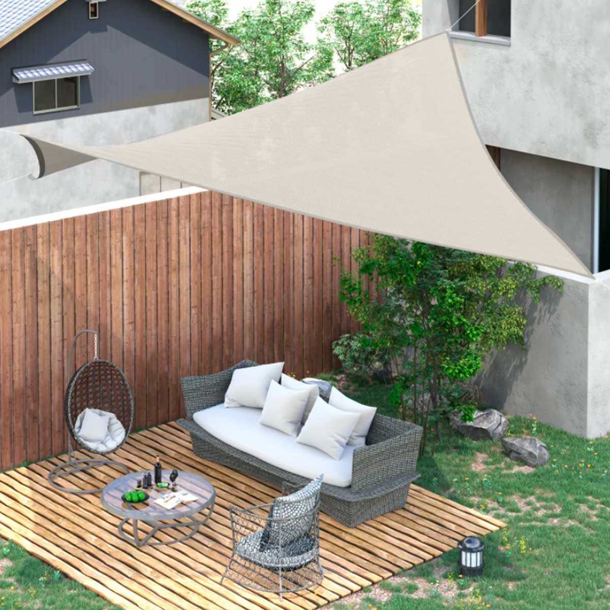 Este toldo vela de Outsunny es una manera práctica y económica de sombrear tu terraza o jardín. Está fabricado con poliéster de 160gr/m², material de alta calidad y densidad, con tejido transpirable, que ayuda a reducir la temperatura exterior, bloqueando hasta un 95% de los rayos UV. Es muy fácil de instalar gracias a sus anillas en forma de D situadas en las esquinas y a las 4 cuerdas de tensado. Para su instalación se recomienda instalar el toldo de forma oblicua para que el agua de lluvia fluya rápidamente si se diera el caso. Además, se recomienda dejar un margen entre el punto de fijación y el anillo de acero de la esquina. ¡No lo dudess más y hazte ya con este estupendo toldo vela a un precio bestial!