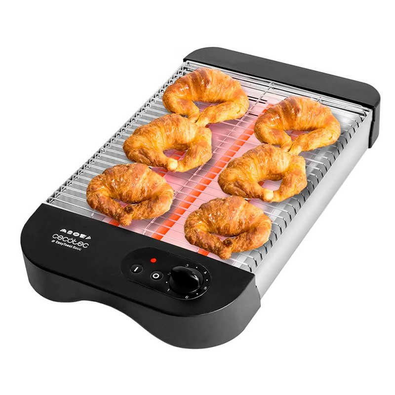Disfruta de unos desayunos perfectos gracias al nuevo tostador EasyToast Basic de Cecotec. Gracias a sus 900W de potencia y a su innovador diseño con 3 resistencias de cuarzo conseguirás un tostado perfecto en tiempo récord, para que empieces el día disfrutando de lo que más te gusta. Su diseño te permitirá tostar no solo pan, si no también una gran variedad de bollería. Cuenta con 6 niveles de potencia y limpiarlo será muy sencillo gracias a su bandeja recogemigas.