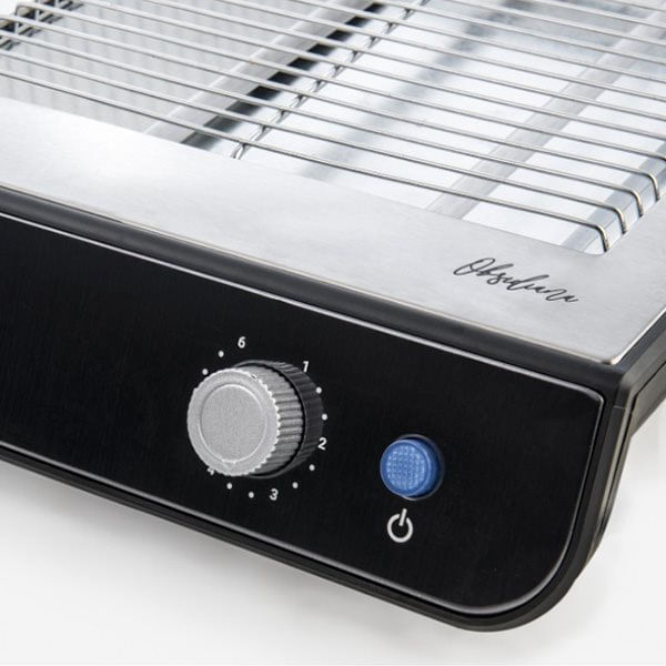 ¿Te apetece una tostada para desayunar? ¿Quizás un croissant caliente? No te preocupes, con este tostador plano podrás empezar tu mañana de la mejor manera en mucho menos tiempo de lo que imaginas, gracias a sus 600W de potencia. Porque creemos que diseño y comodidad no tienen porqué estar reñidos, con los tostadores planos podrás tener tu desayuno perfecto, es tan sencillo como encenderlo y colocar sobre él cualquier pieza de pan o bollería. Una vez listo, añade aceite o mermelada al gusto y ¡voilá! - Potencia de 600W: Equipado con 600W de potencia y dos elementos calefactores de cuarzo para una máxima eficiencia - Easy control: De fácil uso gracias a su control electrónico - Easy AutoOff: Apagado automático según el nivel de tostado establecido. Con hasta 6 niveles de tostado - Easy Accessories: Con amplia bandeja recogemigas para una limpieza más cómoda - Easy Light: Incorpora un botón con luz led color azul que se iluminará al activar el tostador - Soul Design: Elegante diseño en acero inoxidable y acero inoxidable negro, con pequeños detalles en color azul - Certificado CE