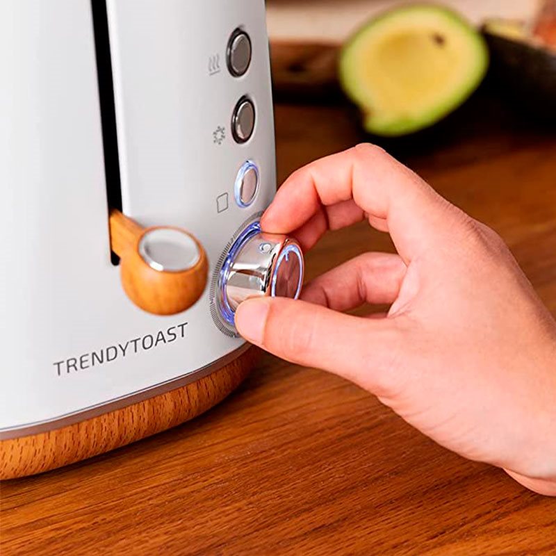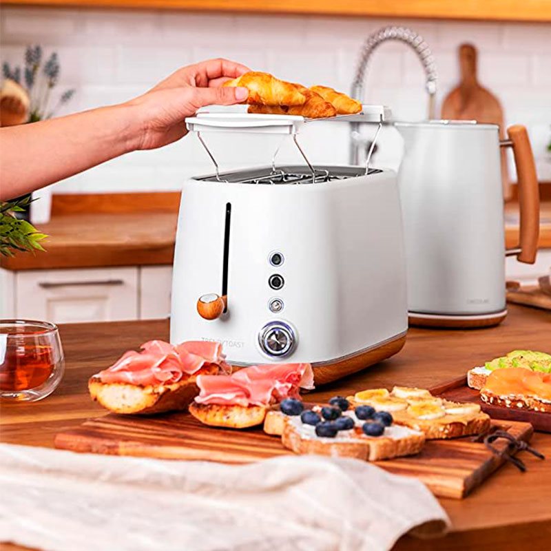 No es lo mismo una tostada que una BUENA tostada. ¡Prepara tostadas deliciosas con este tostador TrendyToast 9000 White Woody de la marca Cecotec! Se trata de un tostador de 900W con 2 ranuras extra grandes perfectas para todo tipo de panes. Dispone de 6 niveles diferentes para tostar el pan. ¡Eso no es todo! Además, tiene 3 modos preconfigurados que te harán la tarea más fácil: podrás recalentar, descongelar y controlar el tostado manualmente. ¿Necesitas calentar alimentos más grandes como croissants o napolitanas? ¡Ahora puedes hacerlo! Incluye unas varillas superiores para un perfecto efecto horno. Consigue ahora este práctico tostador y prepara deliciosas tostadas en casa.