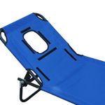¿Esperando el buen tiempo para salir al aire libre a leer o tomar un poco el sol? Entonces esta tumbona de la marca Outsunny te encantará. Y no solo porque podrás llevártela a todas partes gracias a su diseño plegable, sino porque cuenta con un orificio a la altura de la cabeza y cojines alrededor para que puedas apoyarte si estás boca arriba o leer mientras está tumbado boca abajo. Está fabricada con estructura metálica de gran resistencia a la intemperie y oxidación y su tejido de textilene en color azul con recubrimiento de PVC es resistente al agua.